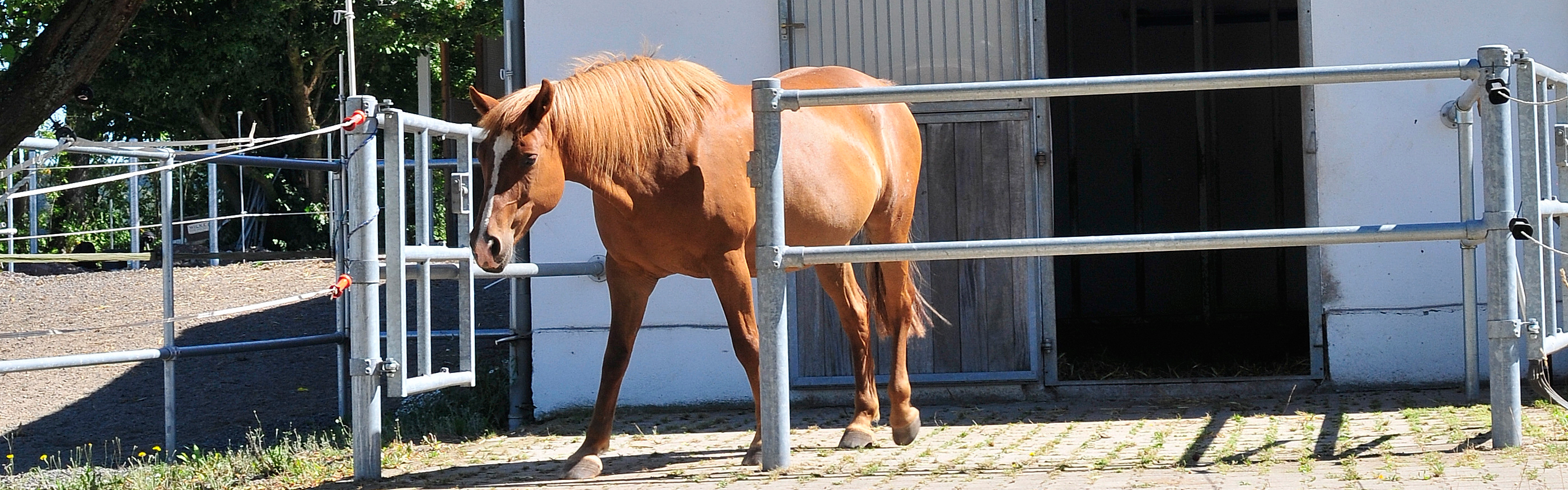 Alle Boxenpferde können im Winter täglich auf naheliegende Ausläufe gebracht werden, wo sie sich in Gesellschaft frei bewegen, wälzen und spielen können. Im Sommer stehen den Pferden rund um den Hof ausgiebige Weideflächen zur Verfügung. In Gruppen von 6 – 10 Pferden können sie dann auf großen Koppeln stundenweise oder 24/7 ihr Leben genießen und sich dem frischen Gras widmen. Jede dieser kleinen Herden erhält ein transportables Sonnen-/Wetterdach, ständig frisches Wasser und ca. alle 14 Tage eine neue, frische Weidefläche. Wir kontrollieren mehrmals täglich, ob die Tiere gesund und die Zäune in Ordnung sind.
